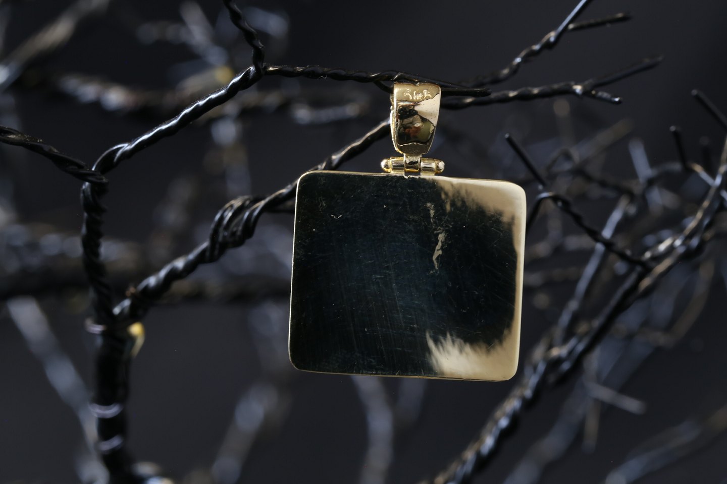 Flot og massivt vedhæng til halskæde, med motiv af den tohovedet. Vedhænget er udformet i firkantet design, med motivet i midten. Hvis du vælger en massiv guldkæde, vil vedhænget fremstå med styrke og identitet.