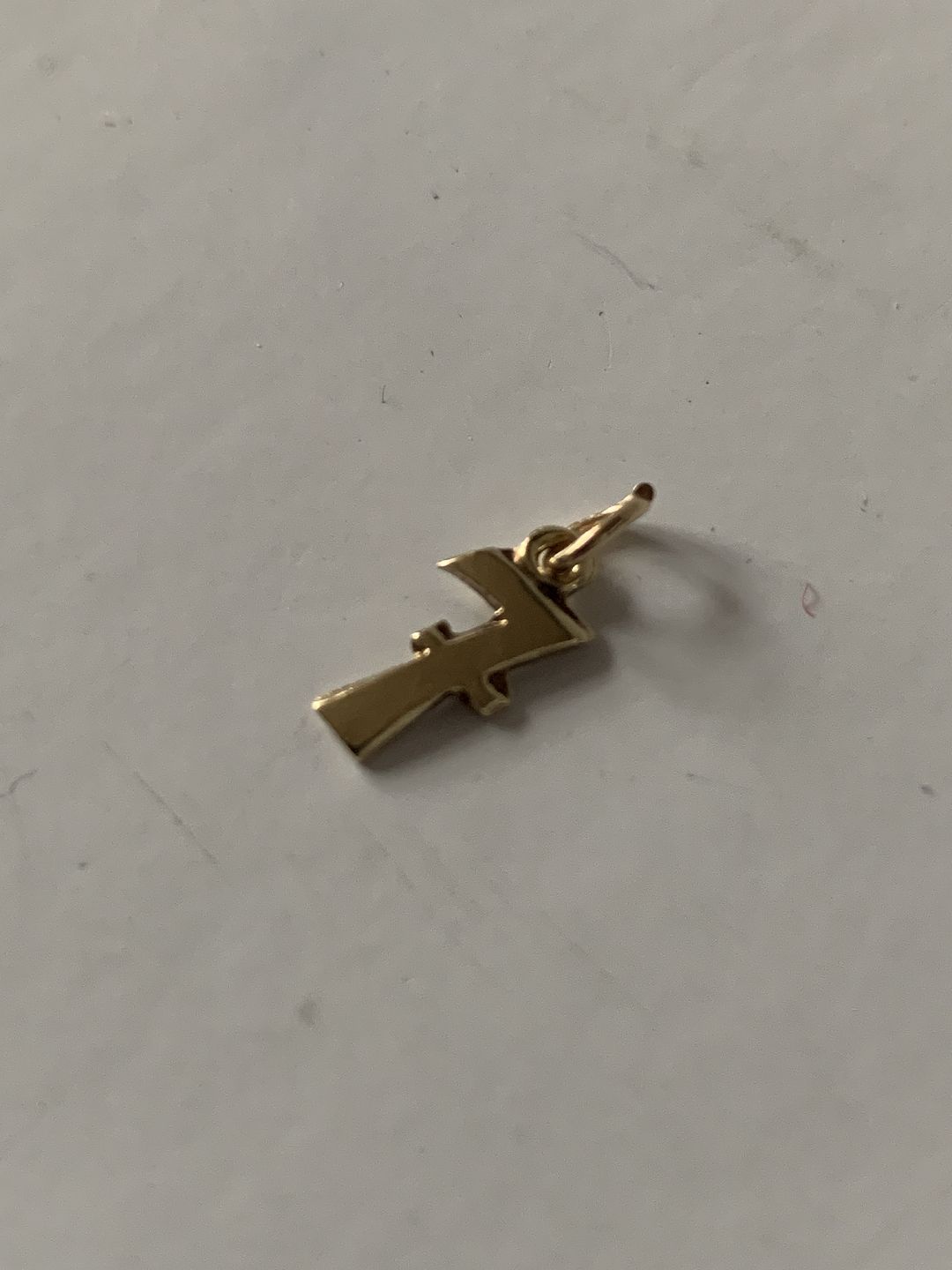 Vedhæng/charm formet som 7-tal, i 14 karat guld og stemplet 585.