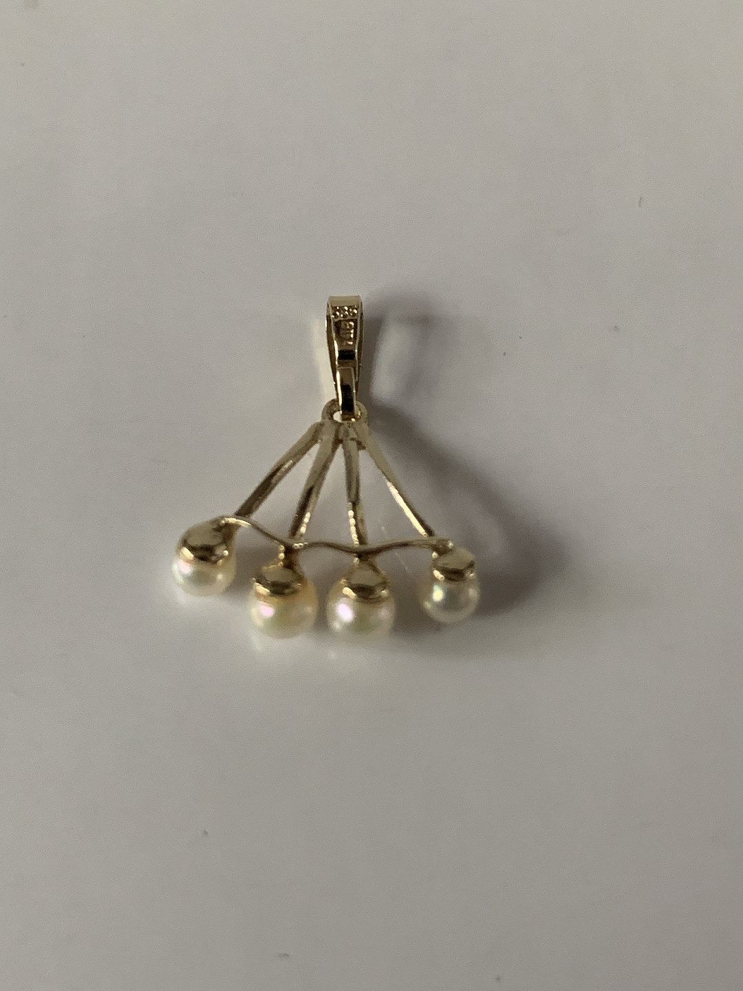 Gold pendant in 14 carat gold, with inlaid pearls. and will be ideal for a thin gold chain. Here it will be a discreet but elegant necklace for both everyday life and parties. The pendant is shaped beautifully. It is elegant and beautifully executed.