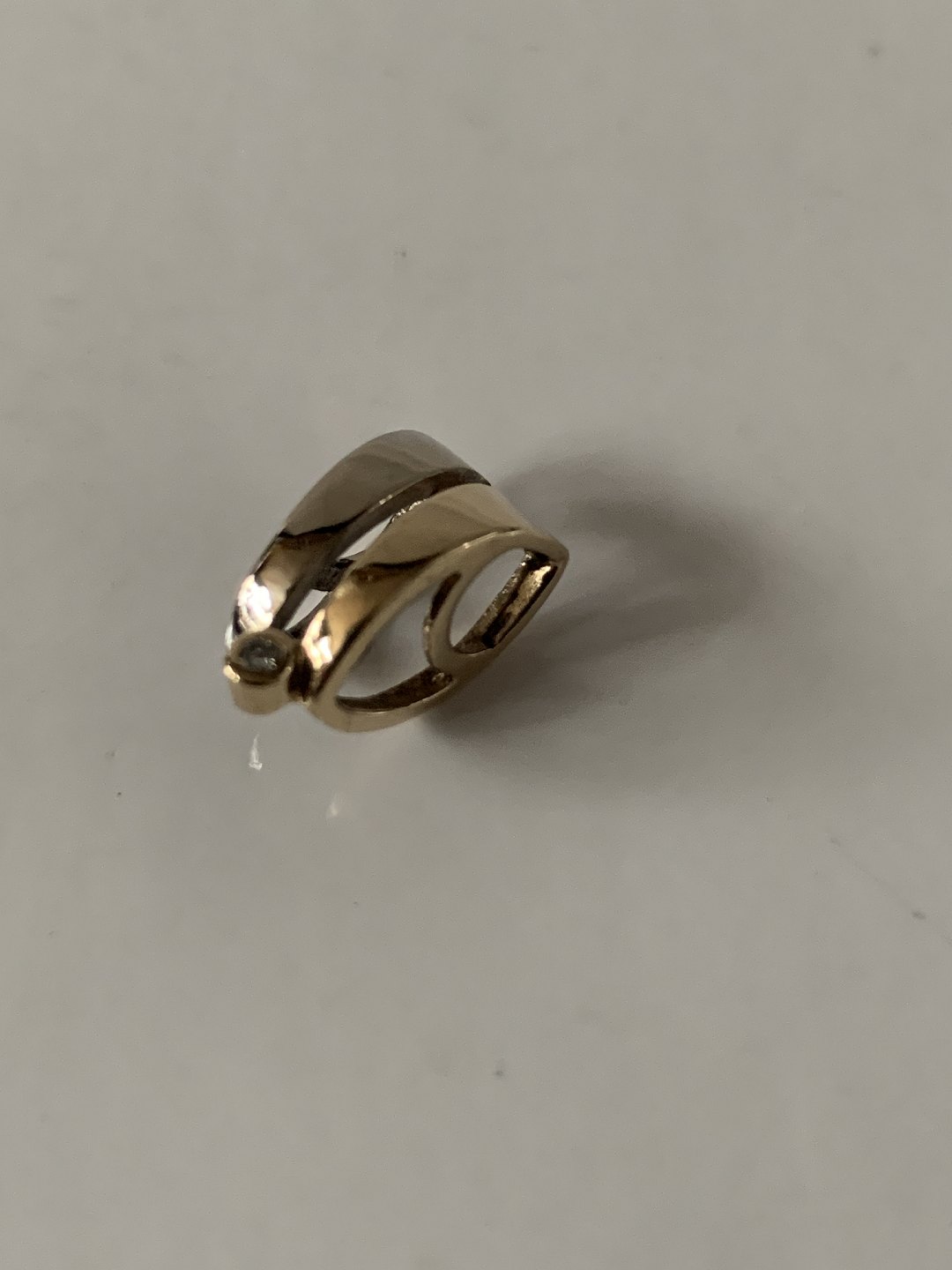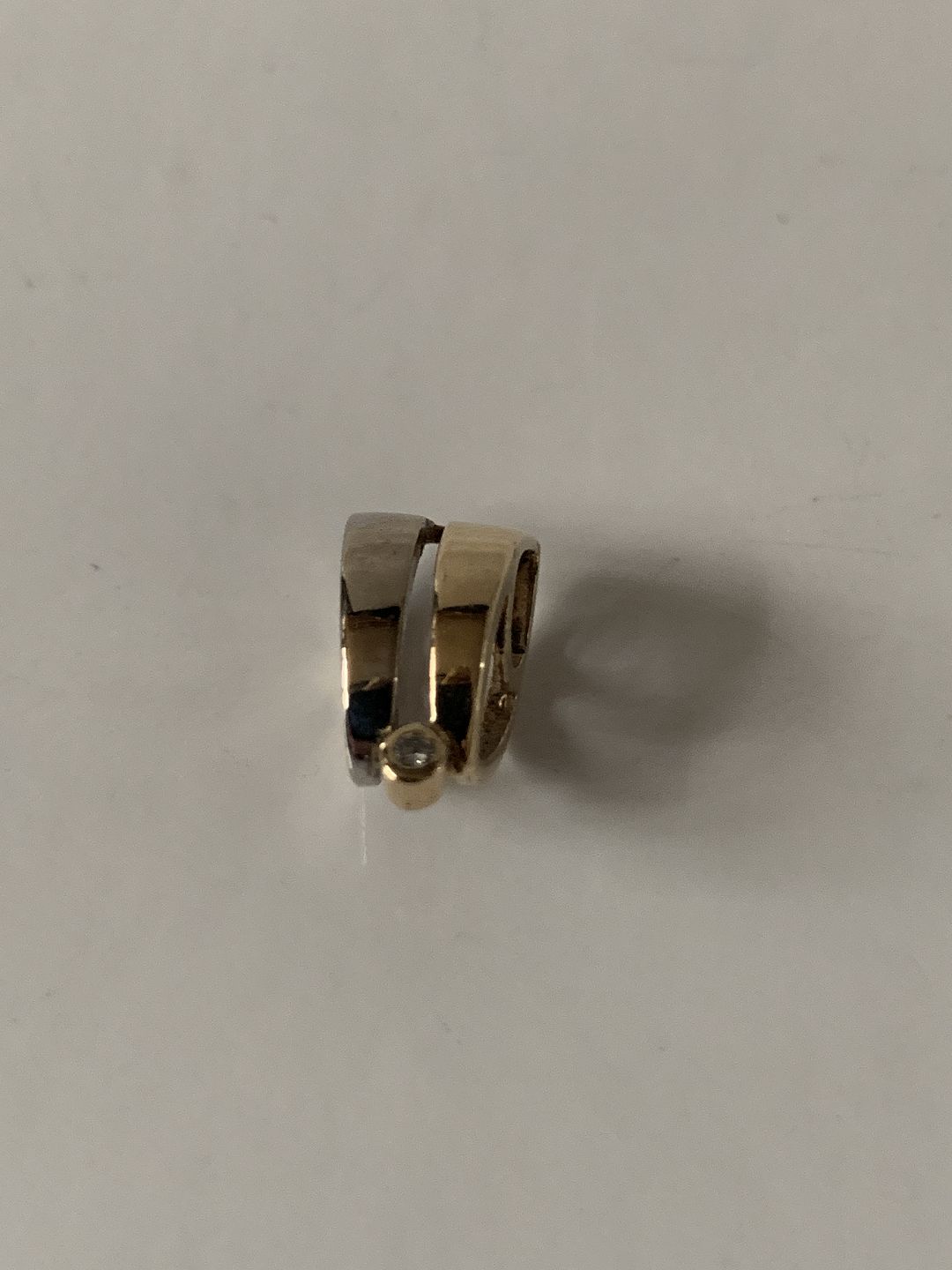 This beautiful pendant is made with attention to the smallest details. The pendant is forged from white and red gold, in a beautiful timeless curved shape. The inlaid brilliant gives the pendant a nice shine that radiates good style and class. Can it be advantageously combined with a thicker gold chain.