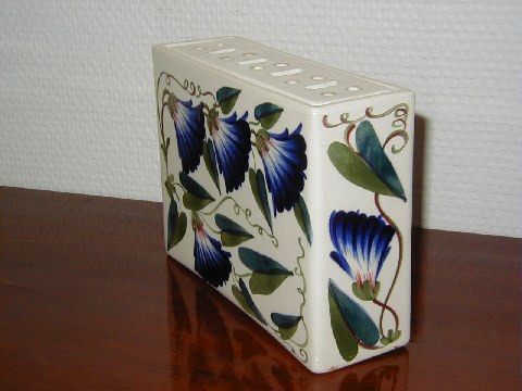 Aluminia Blomsterkumme med rist. Den måler 15,5 x 5 cm., højde 11,5 cm. Den har nummer 232/117. I flot stand.
