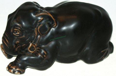 Great Royal Stoneware Figure, Elephant lying Design: Jeanne Grut Dek. No. 22714 Factory first Height 11 cm. Length 21.5 cm. Beautiful and well maintained condition