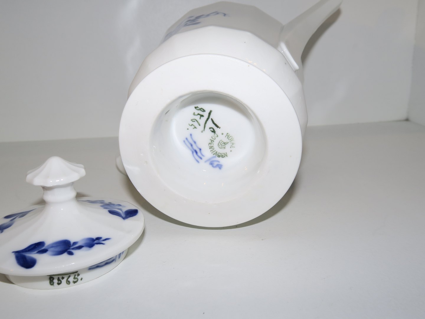 Royal Copenhagen Blå Blomst Kantet, sjælden lille kaffekande.