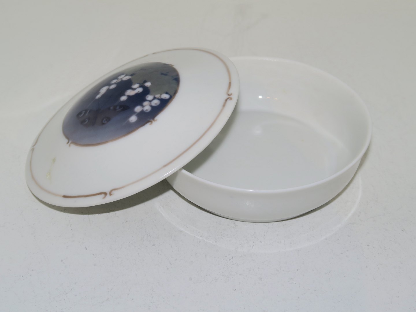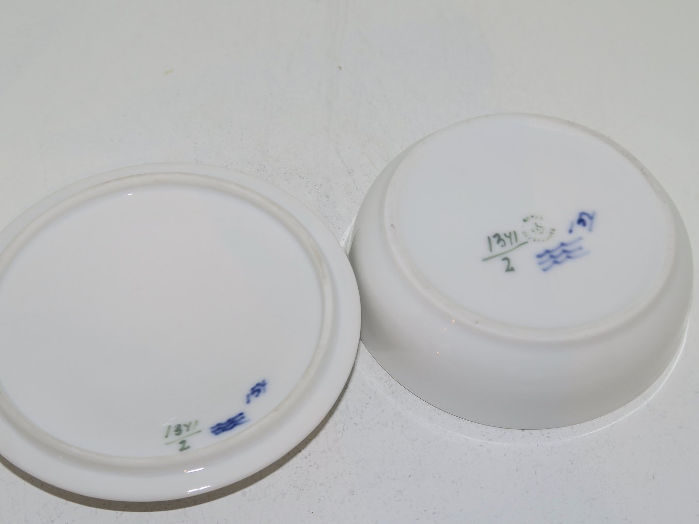 Royal Copenhagen Art Nouveau, skål med låg med sommerfugl. Af fabriksmærket ses det, at denne er produceret i mellem 1898 og 1923. Dekorationsnummer 1341/2. 1. sortering. Diameter 10,4 cm. Perfekt stand uden fejl.
