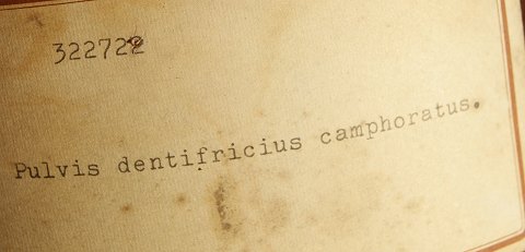 Auf Aufkleber „322722“ und „Pulvis Dentifricius Camphoratus“.