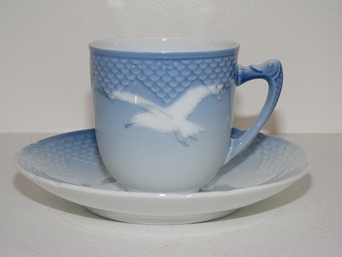 Bing & Grøndahl Måge uden guldkant, lille espressokop med underkop.Af fabriksmærket kan det udledes, at disse er fra mellem år 1962 og 1970.