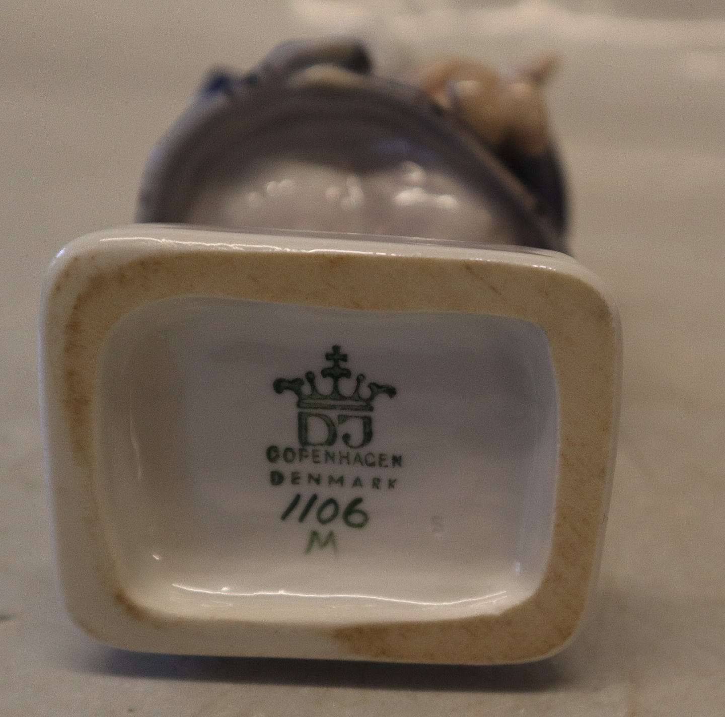 1 stk på lager 1. sortDahl Jensen 1106 Pige med dukke (DJ) 17,5 cm. Mærket med kongelig krone og DJ Copenhagen i hel og fin stand.