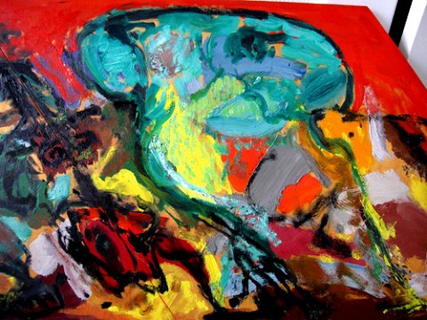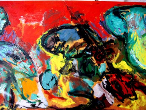 "Cobra komposition" Udstillet bla. på lejerbos palæ Christiansgod. Omtalt i Lise Gotfredsens bog om Mogens Balle, afbildet s. 74
