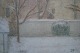 Maleri af John Frederiksen - Snevejr i gården 27/12 1993.
