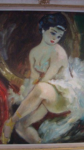 Knud Haugart (1911-93):Ballerina siddende ved ovalt guldspejl 1959.