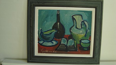 Eyvind Olesen (1907-95):Opstilling med bog og flaske 1965.