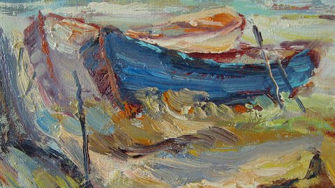 Alex Hansen (født 1947):Kystparti med optrukne både på stranden.