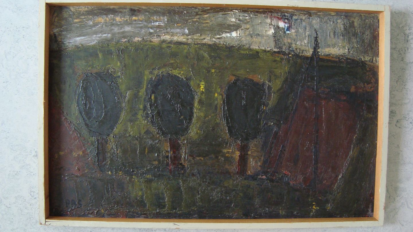 Peder Brøndum Sørensen (1931-2001):Vej med træer og telefon mast.