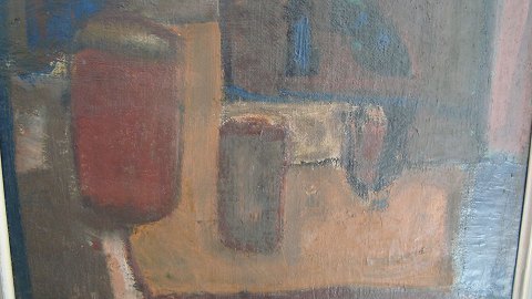 Leif Hedvard Lemmiche (1935-2019):Opstilling i atelier med malerbøtter og krukker.