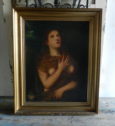Smukt Italiensk oliemaleri, ung kvinde med blottet bryst.Billedet er fra midten af 1900tallet, malet i 17-1800tals stil.