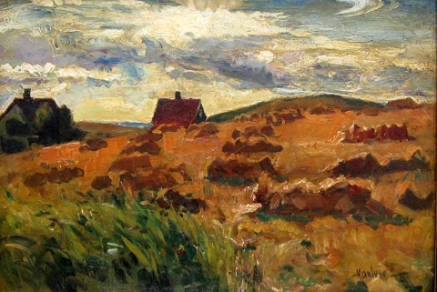 Vantore, Mogens (1895 - 1977) Danmark: Høstlandskab. Olie på lærred. Signeret.: Vantore. 43 x 64 cm. Med guldramme.Emne nummer: 6406