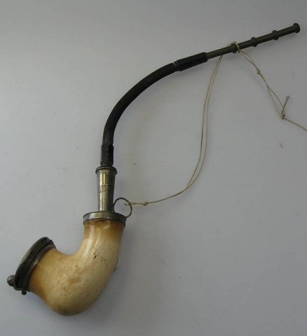 Merskumspibe med låg i sølv, 19. årh. Danmark. Låget er stemplet. L.: 47 cm.Emne nummer: 7584