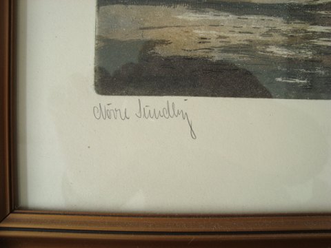 Peder Møller (1890-1961):Parti fra Nørresundby med kirken i baggrunden.
