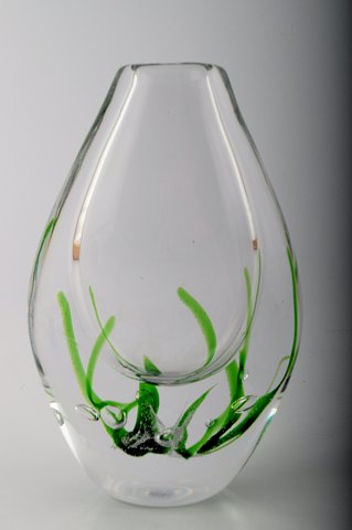 Kosta Boda glasvase af Vicke Lindstrand. Dekoreret med fisk og vandplanter. Elegant svensk design.I perfekt stand. Måler: 19 cm. Usigneret.