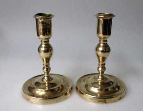Et par danske "Næstvedstager", 18. årh. Messing. Rund fod og profileret stamme. H.: 12,5 cm.Virkelig flot stand!
