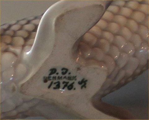 Dahl Jensen fisk 1376 Havskalle, lille 17 cm (DJ). Mærket med kongelig krone og DJ Copenhagen i hel og fin stand.1376 Sea roach, small (DJ) 17 cm