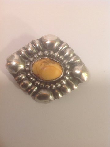 Skønvirke Broche med Rav.Sølv 826S