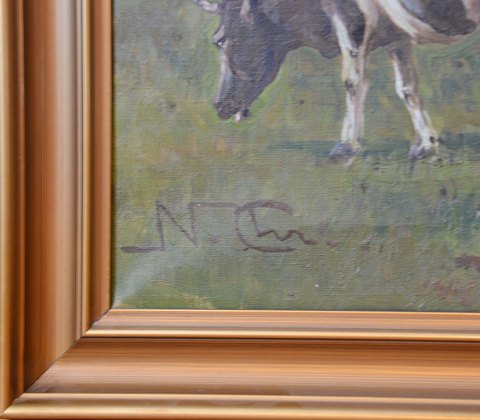 Landskab. Maleri på lærred af Niels Peter Christiansen. Signeret " N. Chr." Meget pæn stand.H. 79 cm. B. 106,5 cm.