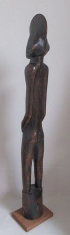Afrikansk patineret træ figur af nøgen mand. 20. årh. H.: 81 cm. På kvadratisk fod.Emne nummer: 13630