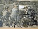 Tegning med motiv af sømænd ombord på et krigsskib.Signeret bagpå af GF Lund. Frederik Christian Lund (1826-1901)