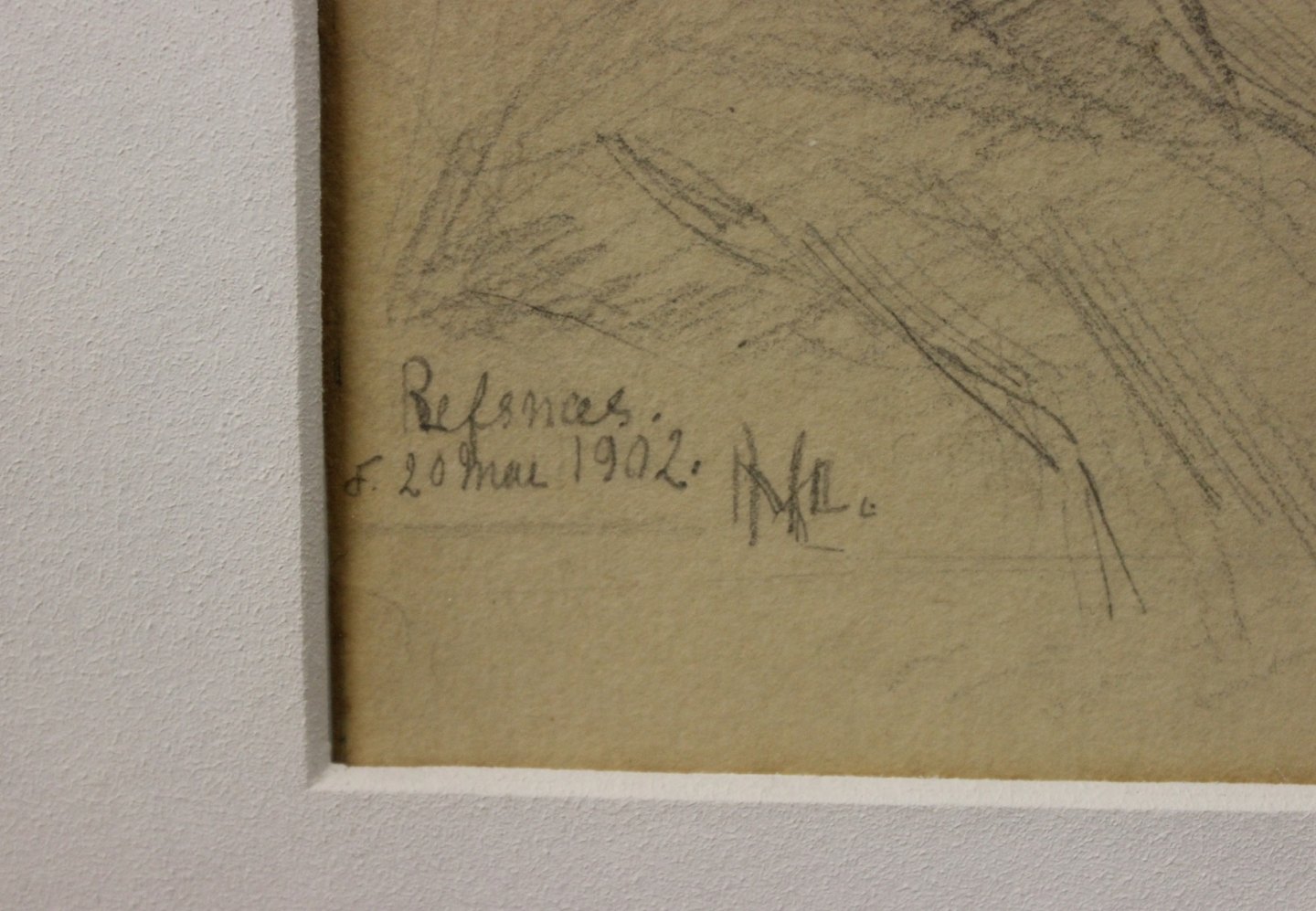 Portræt tegning signeret Refsnæs f. 20 maj 1902, RML.H - 40 cm og B - 35 cm.