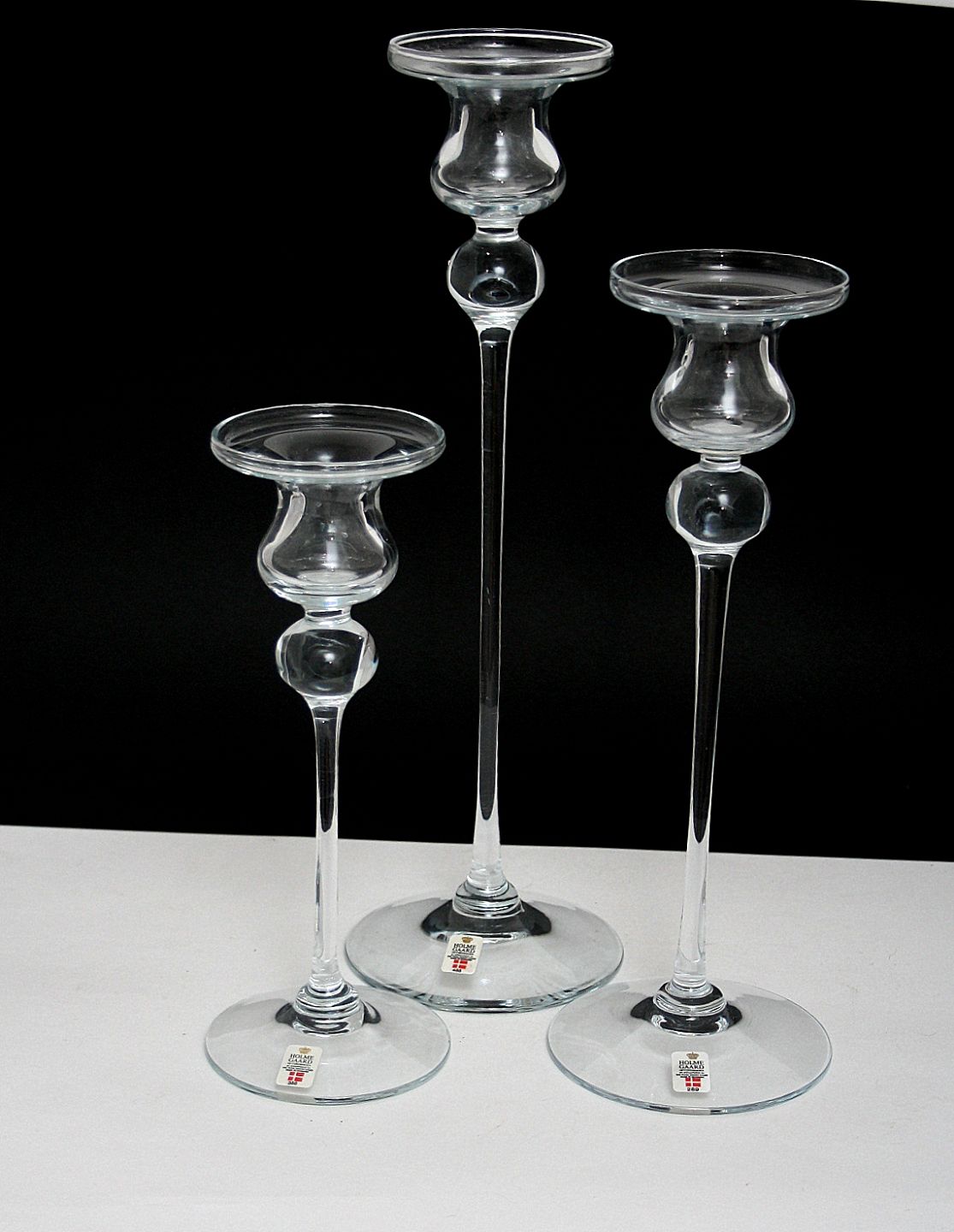 Holmegaard, Casiopeia lysestager i klart glas, designet af Torben Jørgensen i 1984.Højde 35 cm. Pris: SOLGT