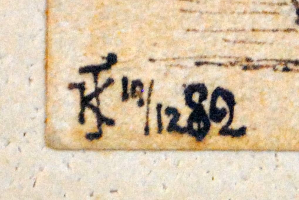 Jensen, Karl Georg (1851 - 1933) Danmark En lille pige ved Koldinghus. Tusch på papir. Signeret: Monogram KJ, 19. 12. 82. 18 x 12 cm. Indrammet med hjørneornamenteret samtidig ramme. Tegningen er antagelig dateret op til jul - og en gave, idet motivet er fra sommeren.Emne nummer: 15573