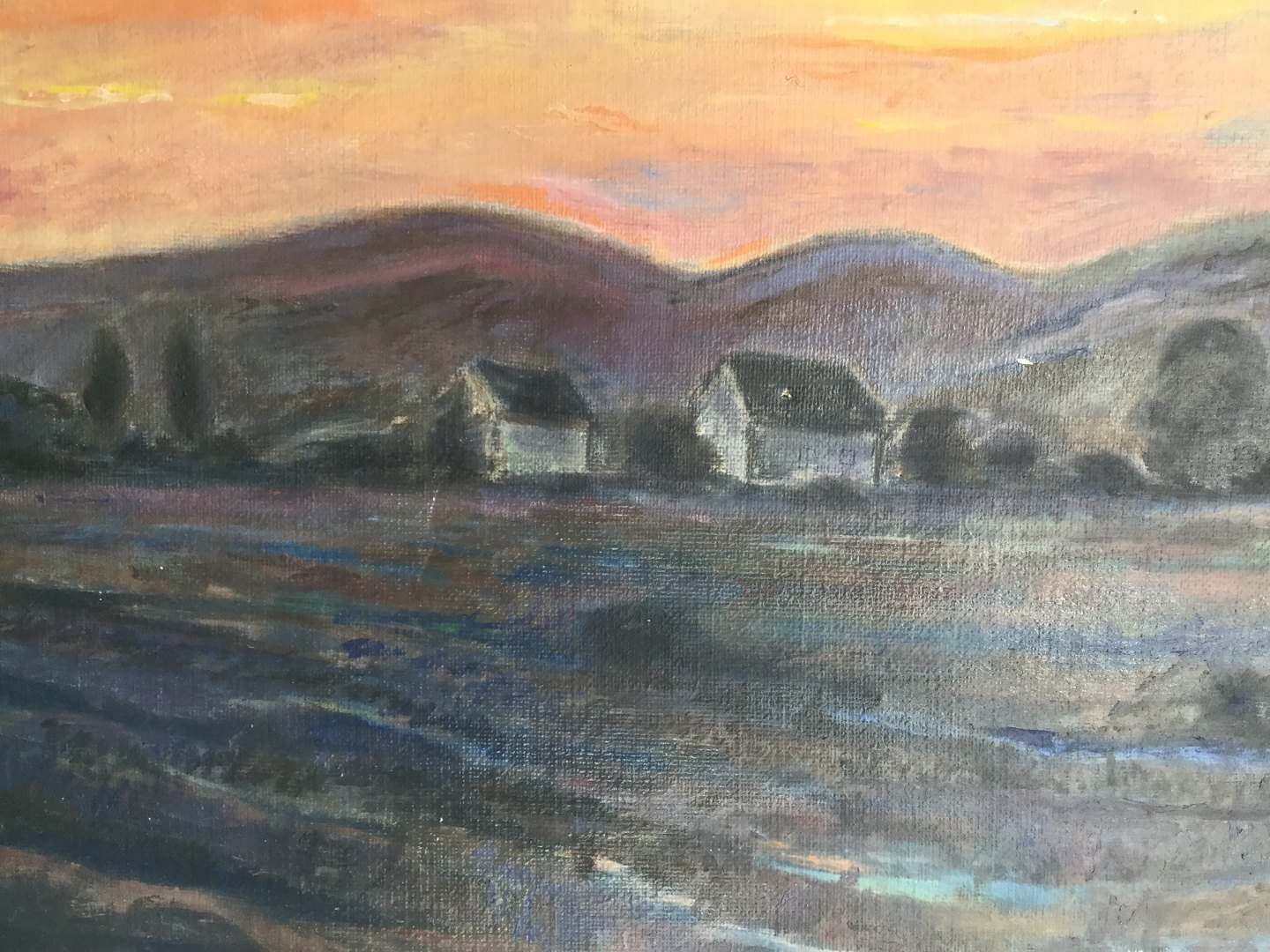 Bent Axel Oelsen (født 1941):Huse ved solnedgang 1977.