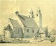 Kornerup, Jacob (1925 - 1913) Danmark: En kirke. Radering. Signeret: J. Kornerup 1854. 22 x 27 cm.Med sølv indramning.