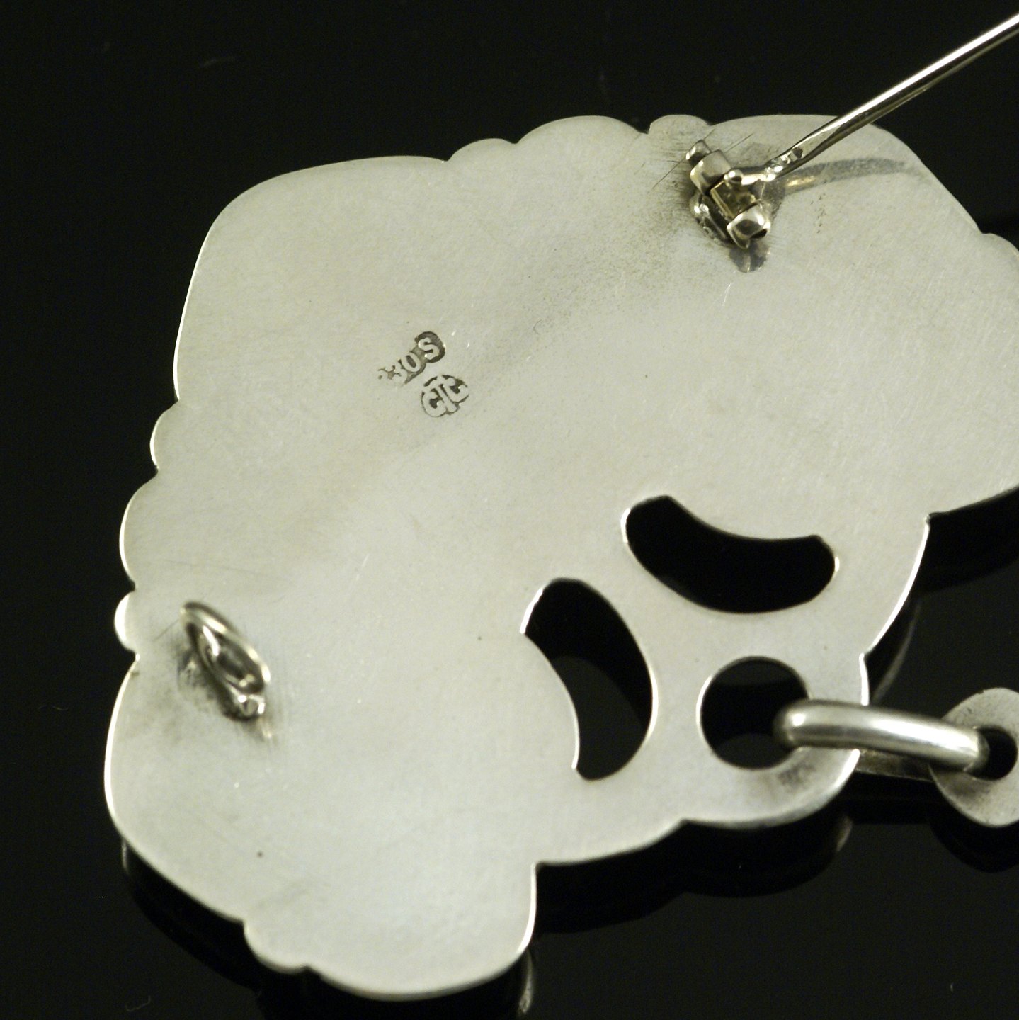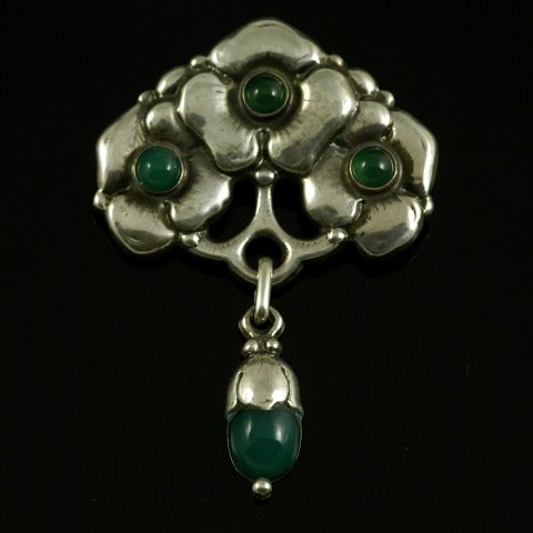 Grann & Laglye. Skønvirke Broche i Sølv med grøn agat.Tegnet og udført hos Gran & Laglye - Copenhagen 1906.