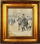 Henningsen, Erik (1855 - 1930) Danmark. Sneboldkamp. Laveret tusch. Verso betegnet. 26 x 22 cm.Med guldramme.