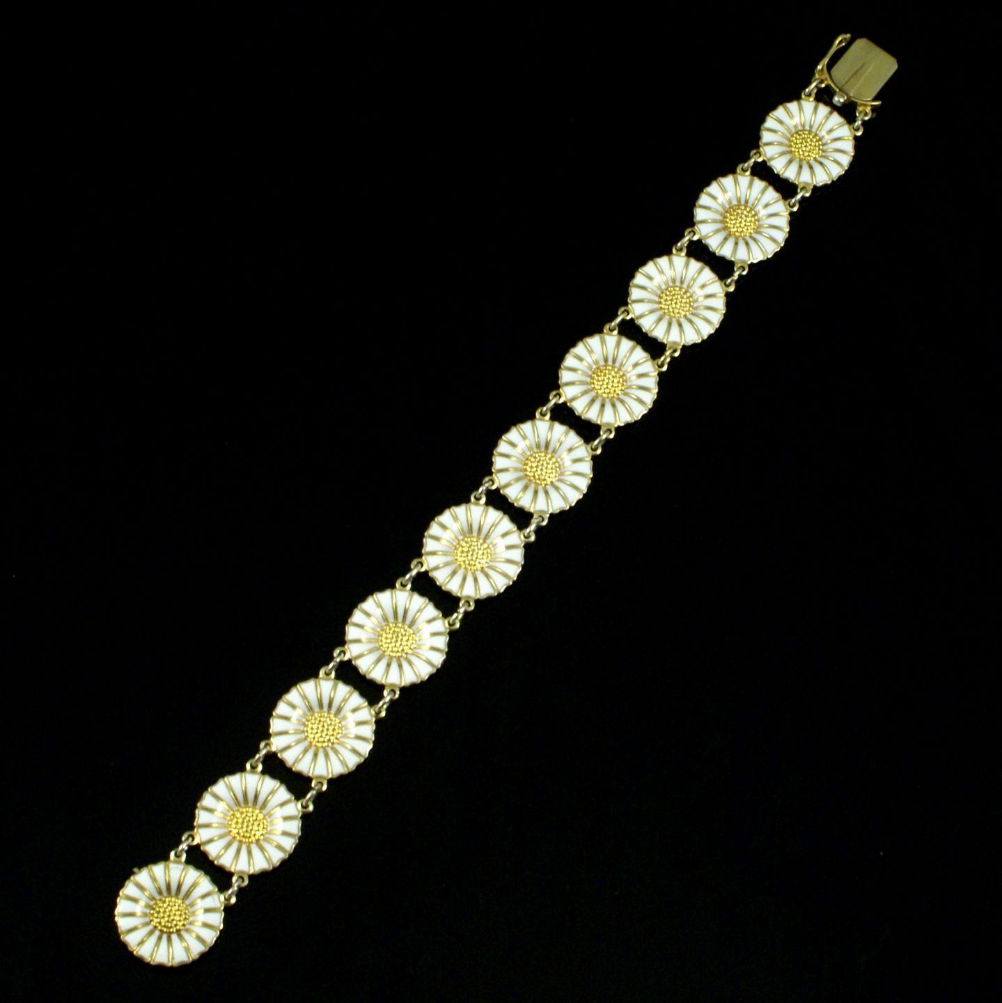 A. Michelsen 18 mm Marguerit / Daisy Armbånd i Forgyldt sterling Sølv og hvid emalje.Stemplet AM (monogram) 925S.