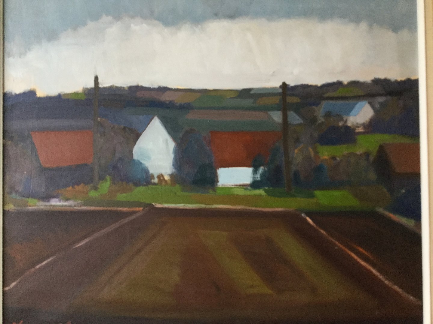 Knud V. Olesen (født 1931):Landskab med marker og gårde.