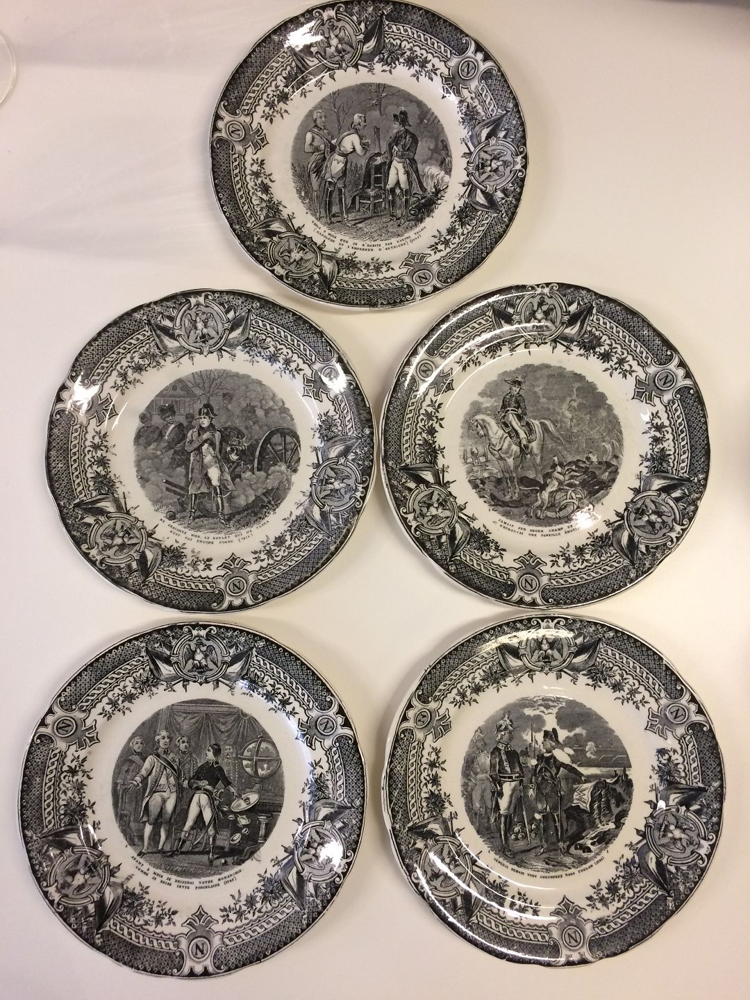 5 frokosttallerkner fra Digoin France med Napoleon motiver. Udstiller