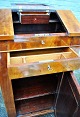 Håndpoleret dansk empire skrivepult i mahogni, 1820 - 40. Øverst skrivepult med filt underlag, under lågen, rum med skuffe. Nedenfor skuffe med mindre rum. Nederst skab med hylder. H.: 140 cm. B.: 74 cm. D.45 cm. Nøgler medfølgerVirkelig flot!