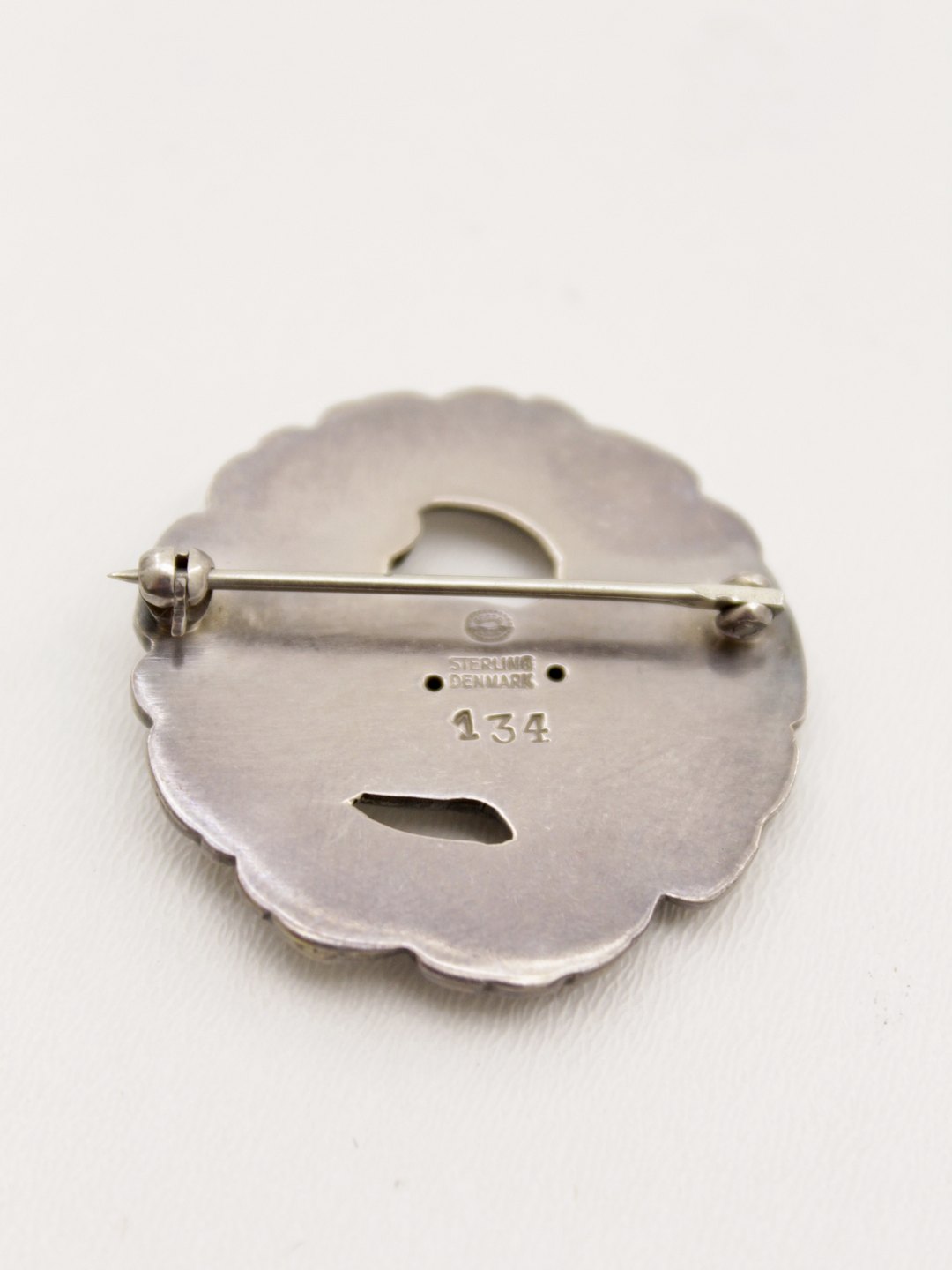 Georg Jensen broche 134 D. 3 cm. med due Nr. 331206 Udstiller