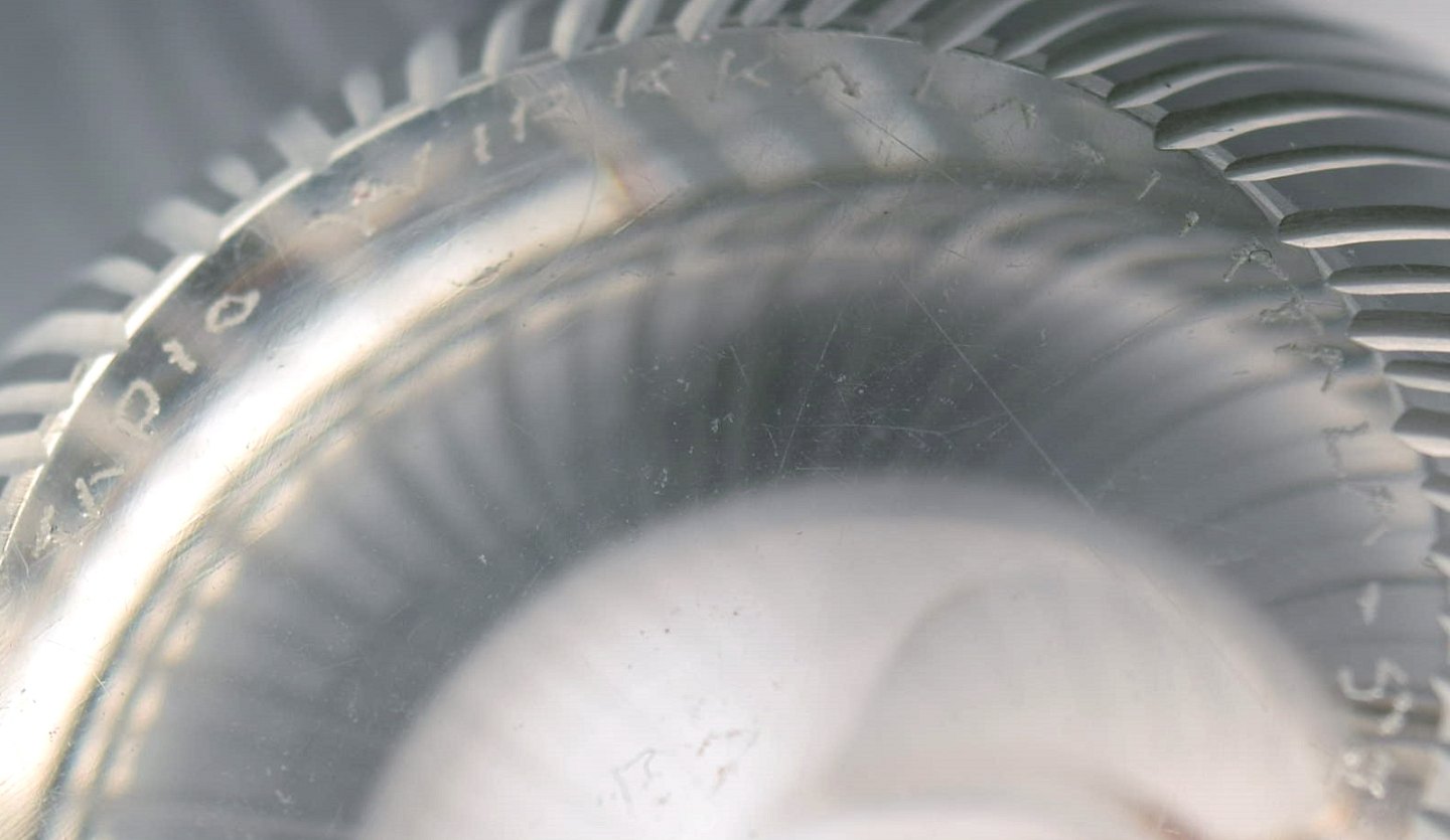 Klar kunstglas vase med indgraveret dekoration i form af striber.