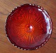 Rød og gul glas opsats, af presset glas, fra Fyens Glasværk.Opsatsen har en rød skål og gul stilk. Opsatsens skål er rød og farverne fader ud til gul, så stilken er gul.