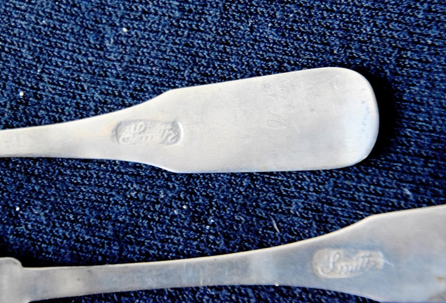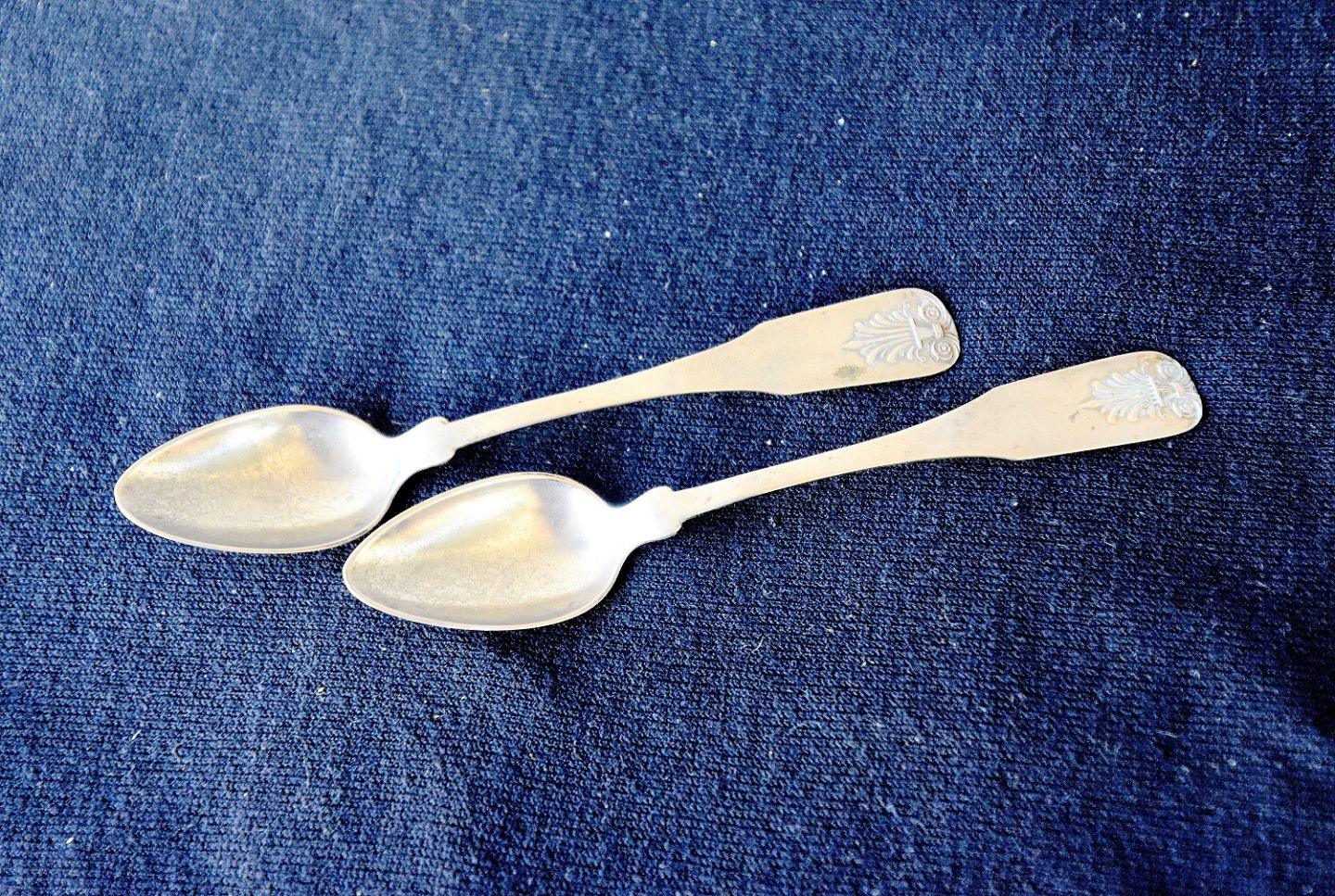 2 sølv teskeer fra Jacob Christian Smith 1837-1876, AalborgMærke Smith