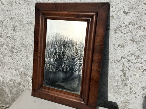 Spejl i mahogni finer, 61cm høj, 44cm bred, facetslebet spejl *Lille afslag i mahognifinéren*Lager: 1