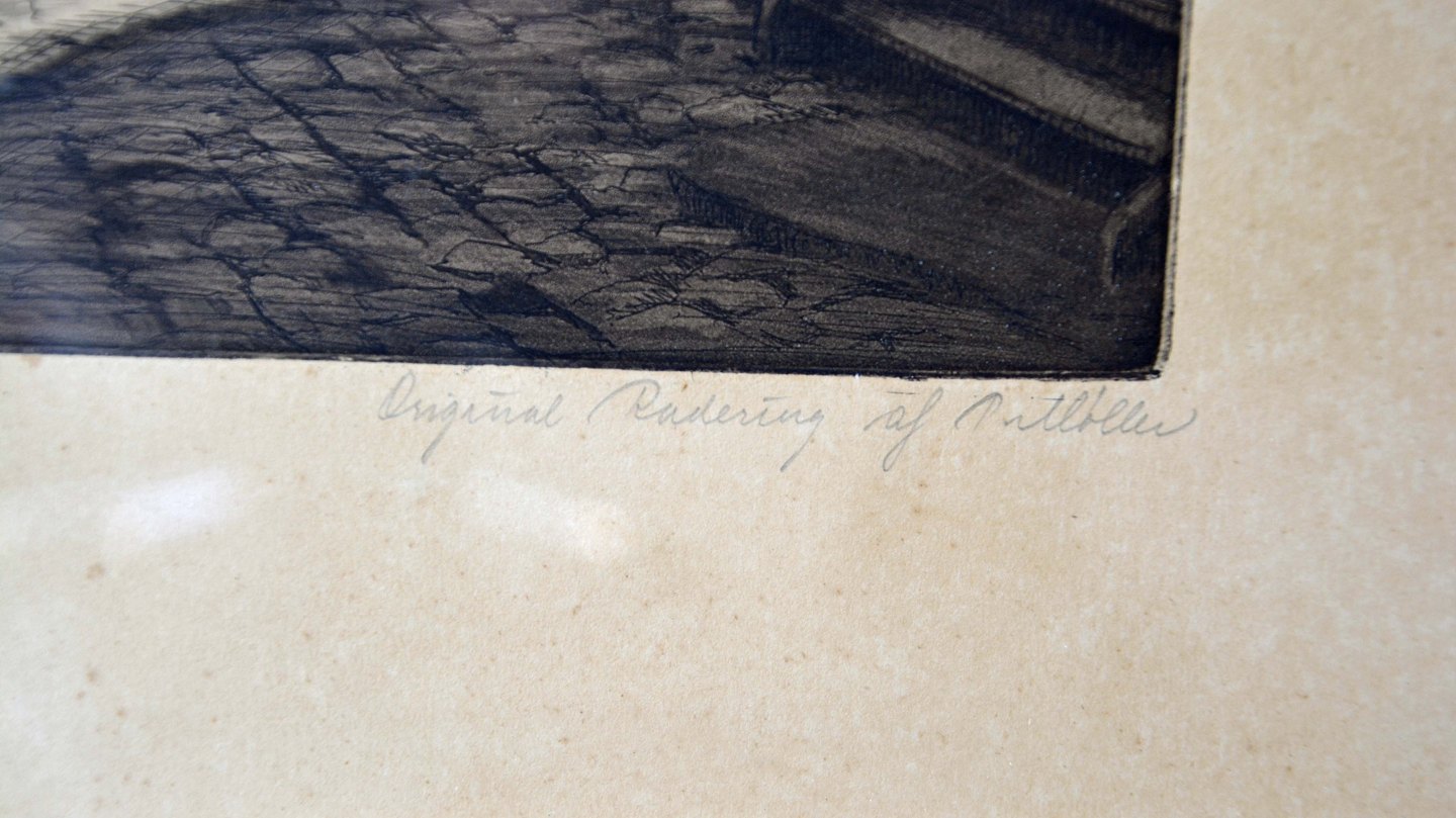 Radering med motiv af indgang til gårdområde af Peter MøllerSigneret "Original radering af Peter Møller"
