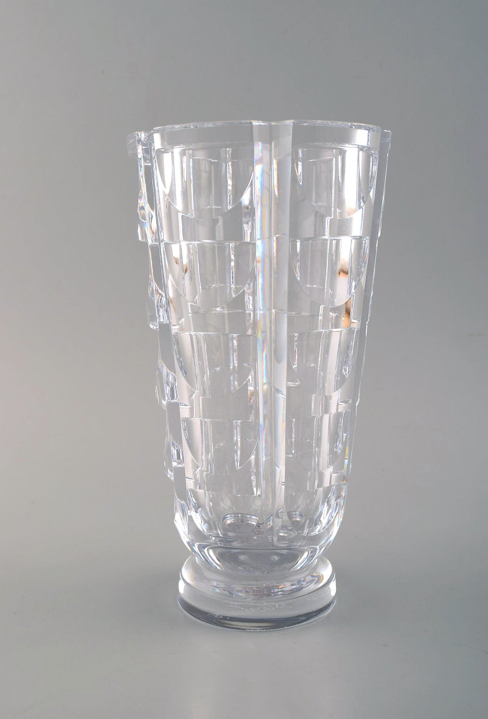 SIMON GATE for Orrefors, "Tusen fönster" art deco vase i satinslebet klart kunstglas. 1950'erne.Måler: 23 x 12,5 cm.