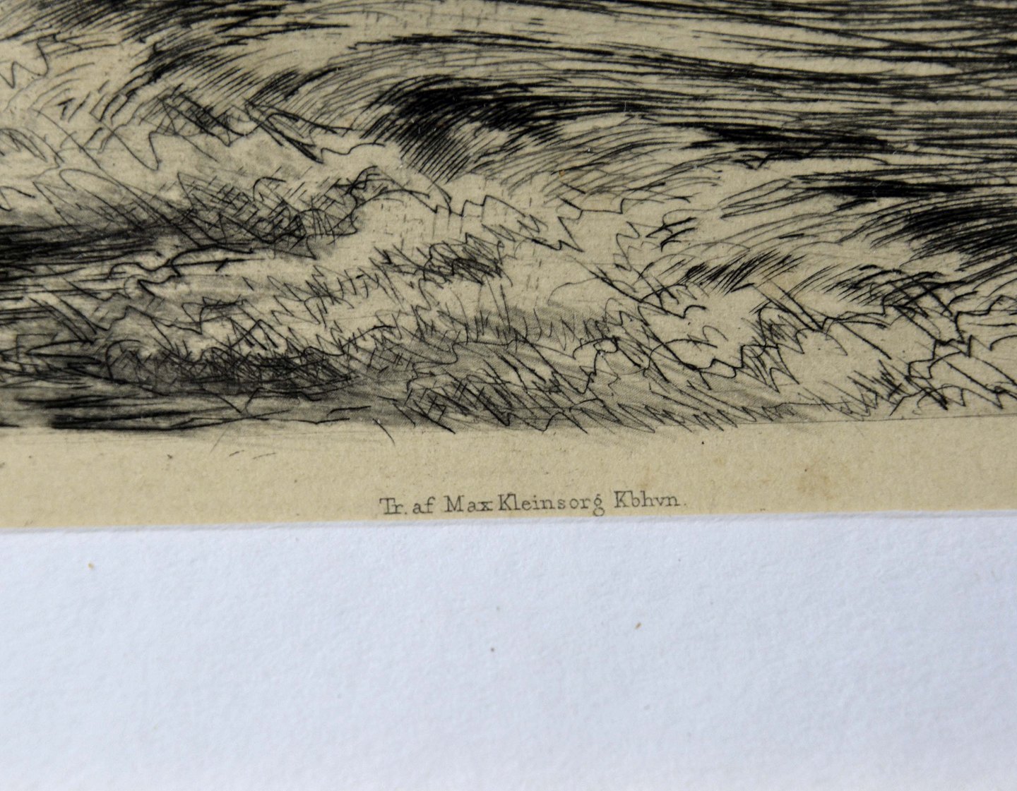 Træsnit med motiv af redningsbåd på hav af Max Kleinsorg efter maleri af Carl Locher, 1900Trykt signatur.