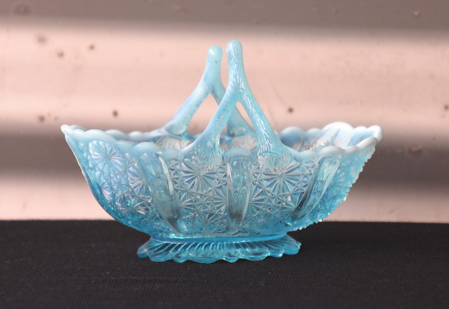 Lyseblå kurv i presset glasSpørg i forretning efter beholdning