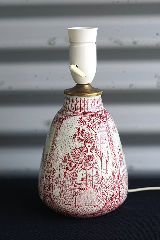 Bordlampe, produceret på Nymølle, med Commedia Dell`Art figurer. Bordlampen er tegnet med rødstregDesign Bjørn Wiinblad for Nymølle Keramik